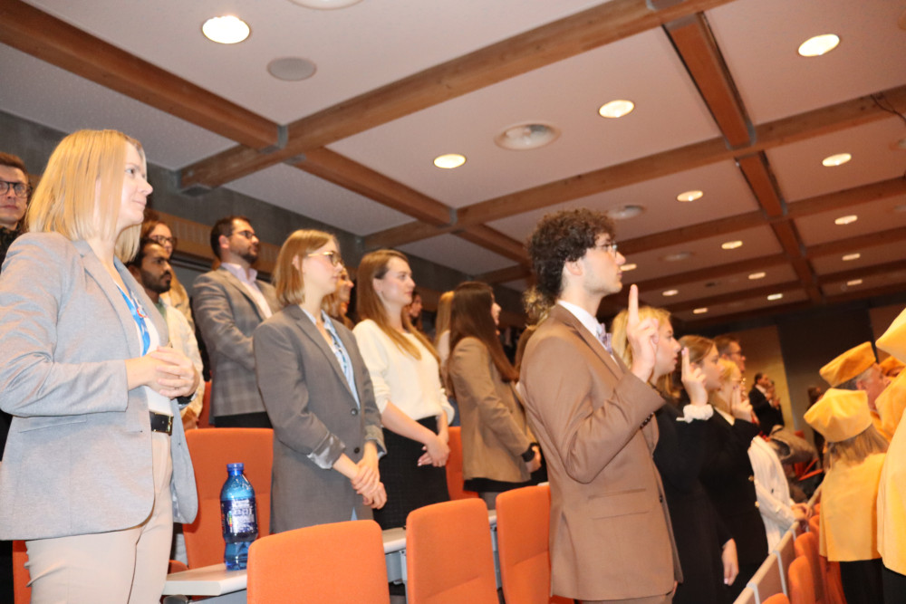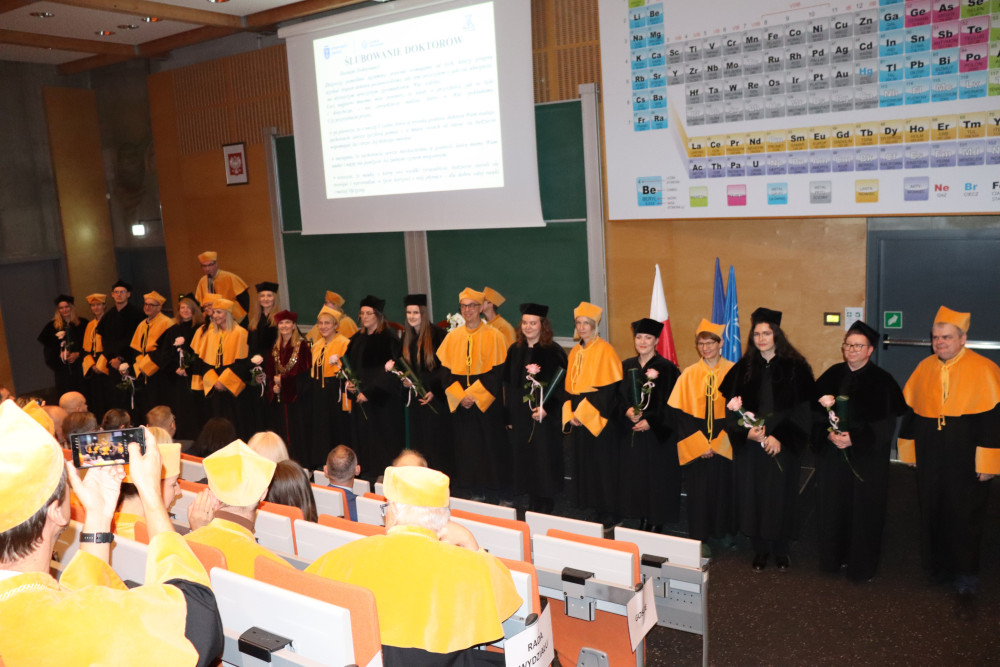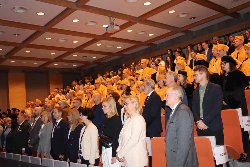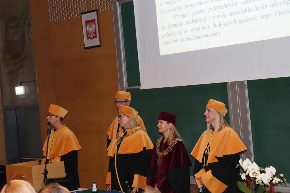 Kolejnym punktem było ślubowanie i immatrykulacja studentów pierwszego roku oraz doktorantów, którzy w obecności władz wydziału formalnie przystąpili do społeczności akademickiej. Następnie uroczyście wręczono promocje habilitacyjne i doktorska, a także przyznano nagrody dla wybitnych pracowników.