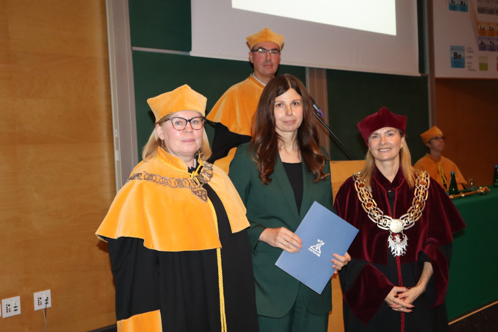 Ceremonię zamknięto częścią naukową uroczystości, podczas której wysłuchano wykładu inauguracyjnego przygotowanego przez dr hab. Renatę Wietecha-Posłuszny, prof. UJ, zatytułowanego „Jak niewidzialne staje się widzialne - analiza mikrośladów w aspekcie chemii sądowej”.