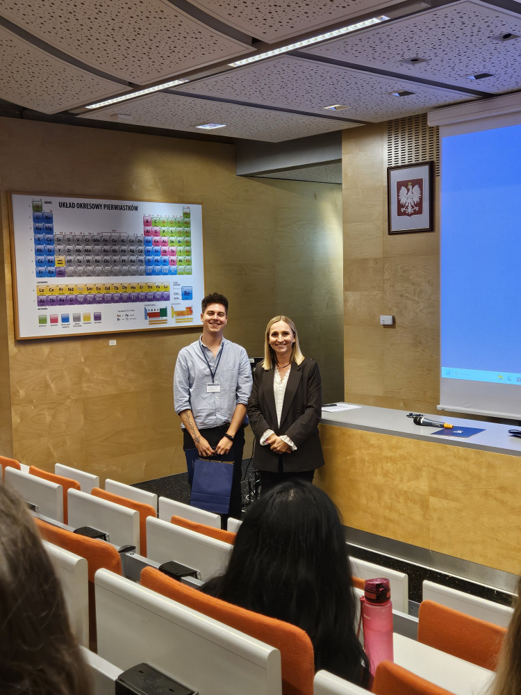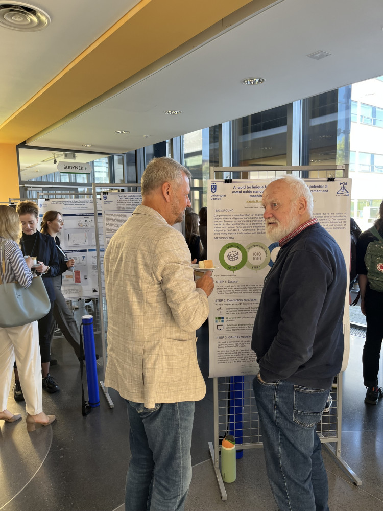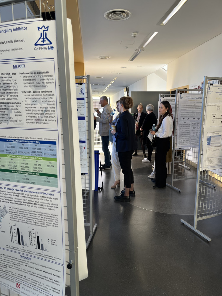 Sesji ustnej towarzyszyła rozbudowana sesja posterowa, w której udział wzięli doktoranci młodszych roczników. Prezentacje plakatowe obejmowały szeroki zakres tematyczny – od projektowania nanomateriałów do zastosowań biomedycznych, przez nowe pochodne heterocykliczne, aż po zaawansowane procesy fotokatalityczne i metody oczyszczania środowiska.